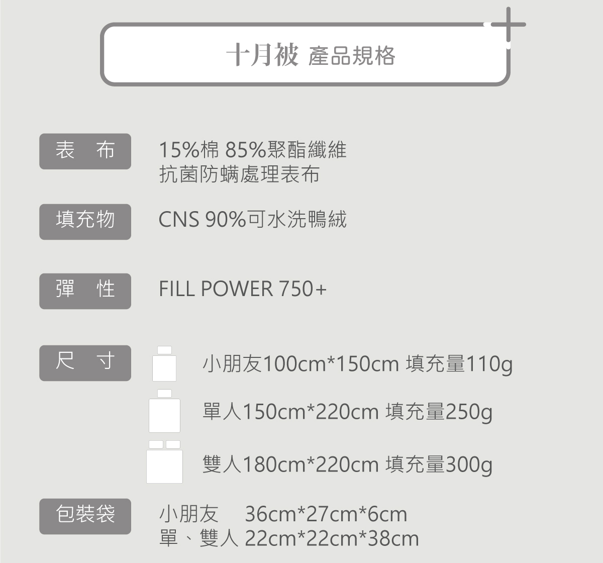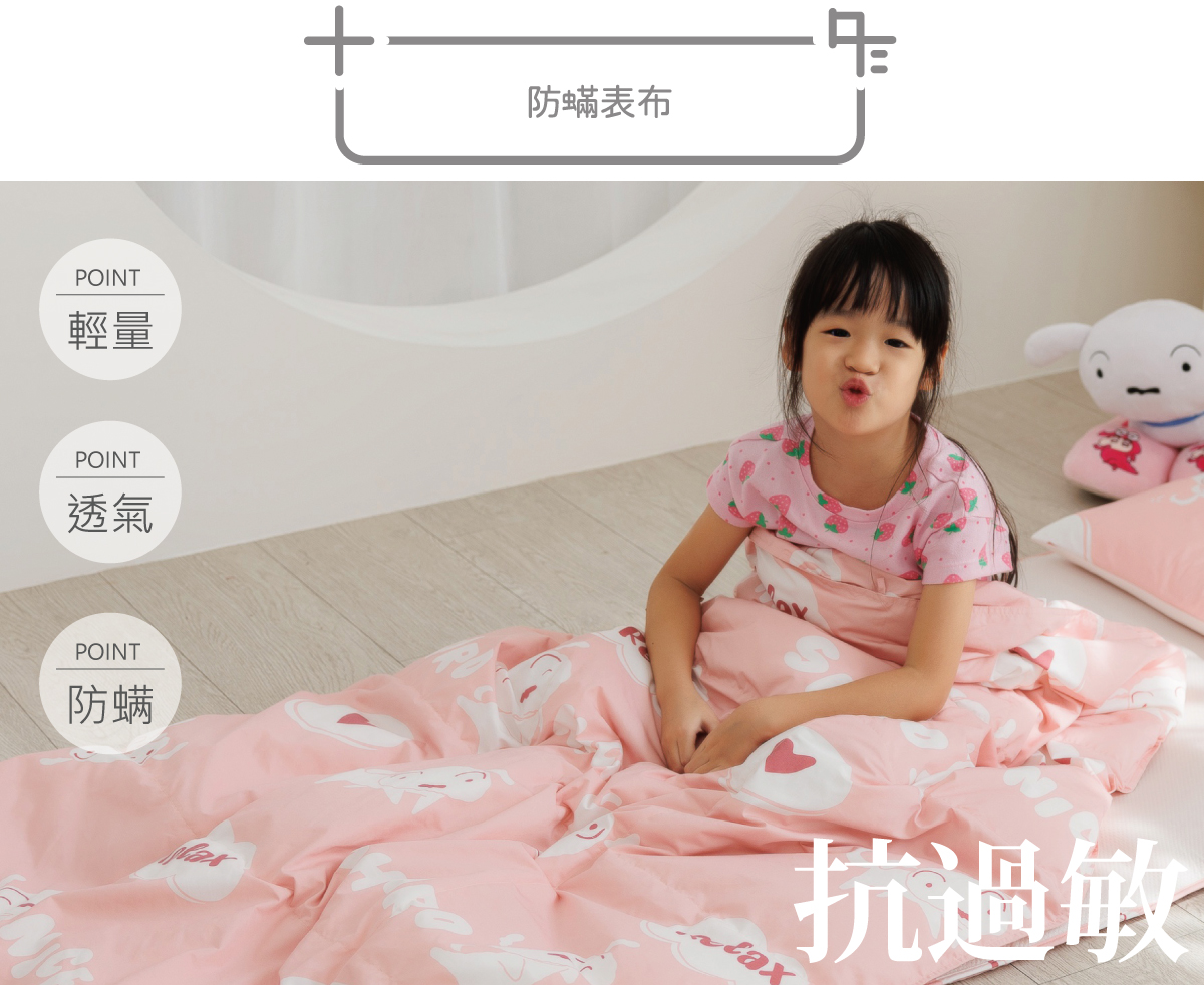 填充物採用台灣低過敏加工羽絨,不論大人小孩,在使用更加放心。